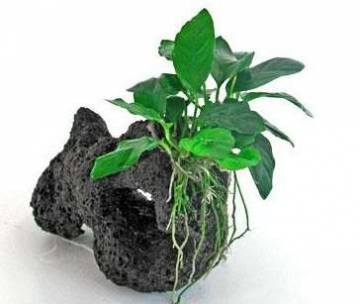 Анубиас карликовый (анубиас Бартера, анубиас нана) в природных условиях произрастает по берегам ручьев, рек и крепится не как все растения, используя грунт, а на корягах, камнях благодаря крепким цепким корнями. Очень редко можно встретить анубиас нана, который растет из грунта. Если вы приобрели черенок этого растения, то не спешите посадить его в аквариумный грунт, попробуйте прикрепить его к коряге. На ней он и смотреться будет намного естественнее, да и придаст коряге необычный вид. Со временем анубиас на коряге разрастется и коряга станет весьма живописной. Как прирастить анубиас к коряге? В коряге в месте, где будем крепить растение, сверлится отверстие 0,5 см в диаметре. Далее используя очень тонкую рыболовную леску или прочную нить, прикрепляем растение к коряге, стараясь корешки продеть в проделанное отверстие. Леску намотать желательно в 2 слоя, чтобы растение перед тем, как успеет нарастить корневую систему вокруг коряги, не свалилось. После прикрепленный анубиас опускаем в аквариум вместе с корягой.