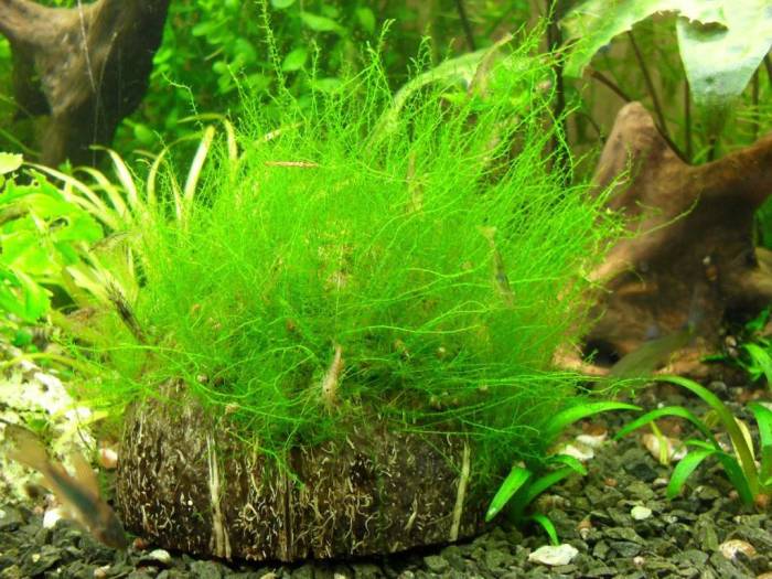 Мох Кладофора. Аквариумный шарик из зеленых нитевидных водорослей. Имеет красивый вид и выполняет роль фильтра для воды.