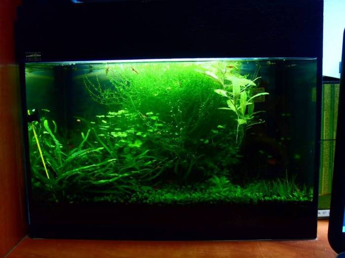 - Правильно подобрать соседей. Например, неонов и тетр, меченосцев, пецилий, моллинезий и, конечно, креветок, истинных чистильщиков этих растений. Следует исключить цихлид, водорослеедов, золотых рыбок.