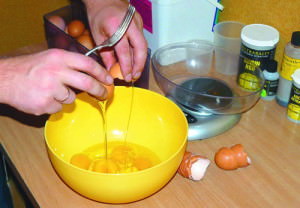 На следующем этапе происходит соединение сухих и жидких ингредиентов в одной емкости, при этом для получения максимально однородной консистенции, необходимо постепенно добавлять жидкую фракцию к сухой, активно перемешивая полученную субстанцию