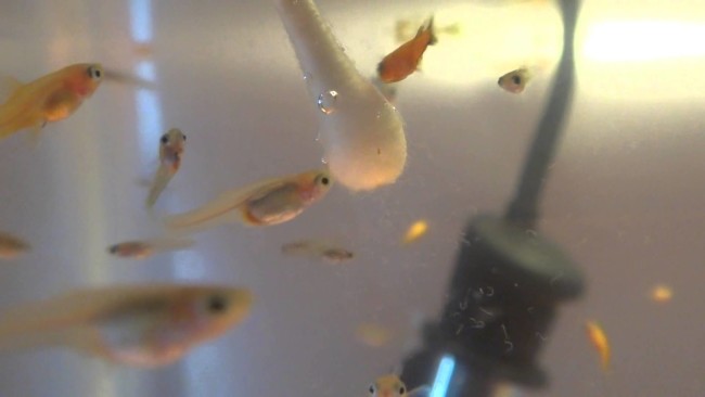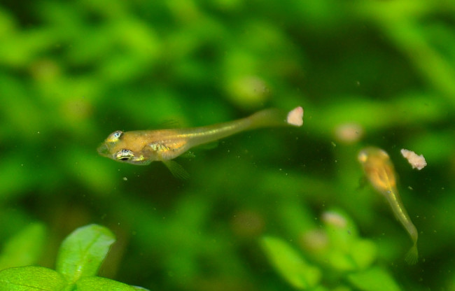 Мальки гуппи рождаются полностью сформировавшимися. Способны есть сами. Скрываются от взрослых рыб.
