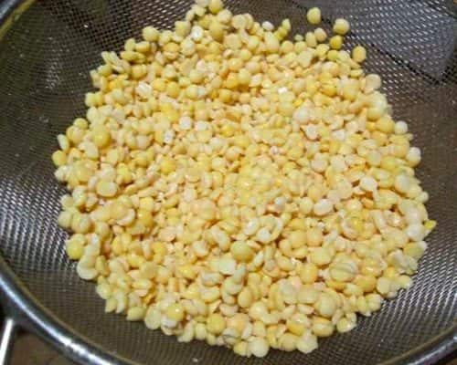 - кладут 400 г панировочных сухарей, 300 г зелёного горошка и 100 г тёртых фруктов;