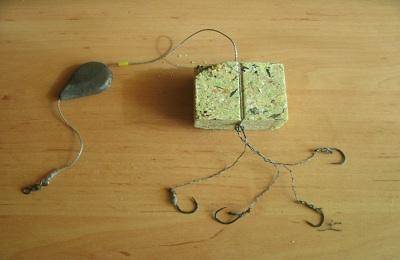 Самая распространенная донная оснастка на карпа – это макушатник. Она состоит из плоского грузила, к которому жестко привязывается кубик прессованного подсолнечного жмыха.
