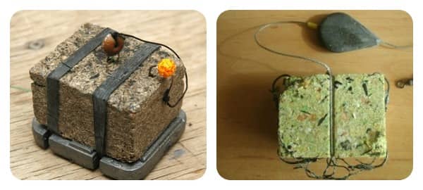 В качестве макухи берут кусок прессованного жмыха. Его крепят с помощью резинки, болта. Муть, поднявшаяся от аппетитной макухи привлекает прожорливого пресноводного «поросенка». При этом он не замечает поводков с крючками, засасывая их вместе с питательными частицами, плавающими в воде.