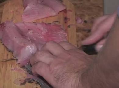 Карпа массой два килограмма чистим от чешуи и внутренностей, моем. Отделяем филе от костей и кожи.