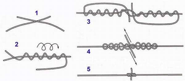 В этом разделе мы представим инструкции, как привязать леску к леске. Мы дадим самые популярные соединения, которые хорошо показывают себя на практике уже много лет. К каждой инструкции приложены схемы правильного вязания, потому что по одному описанию ориентироваться труднее. Начнём с самых простых узлов.