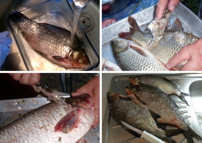 После того, как карася удастся очистить от чешуи, можно приступать к удалению внутренностей. Правильная разделка тушек выглядит следующим образом: