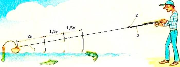 Важно понимать, что коротким удилищем легче ловить под кронами деревьев, а также среди высоких кустарников. Для ловли на чистых участках преимущественно используют удилища длиной 5-6 метров, преимущество заключается в том, что удается выполнять точные забросы приманки на расстояние до 20 метров. Вне зависимости от того какой длины выбрано удилище на него обязательно устанавливается безынерционная катушка с размером шпули 1 500 с передним фрикционом, который нужно настроить еще до начала рыболовного процесса