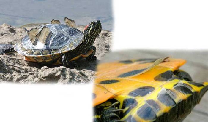 Заболевания панциря сразу видно, поскольку панцирь становится мягким и начинает отслаиваться роговой слой.