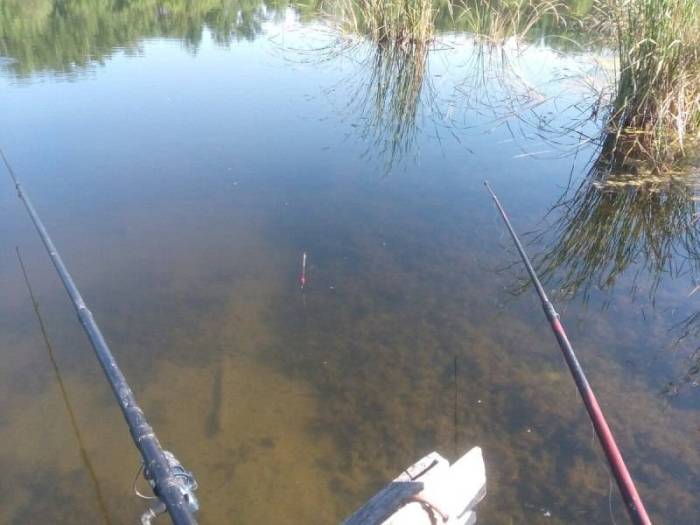 - Выбирается перспективное заросшее место недалеко от камышей в 4-5 метрах от берега.