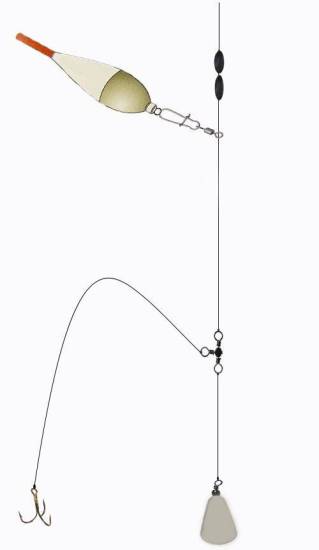 - поплавок грузоподъёмностью 15–25 г с нижней точкой крепления;