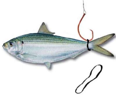 Метод обвязывания применяют, когда хотят полностью избежать травмирования живца. Для этого живца обвязывают ниткой или резинкой для купюр и под нее вставляют крючок.