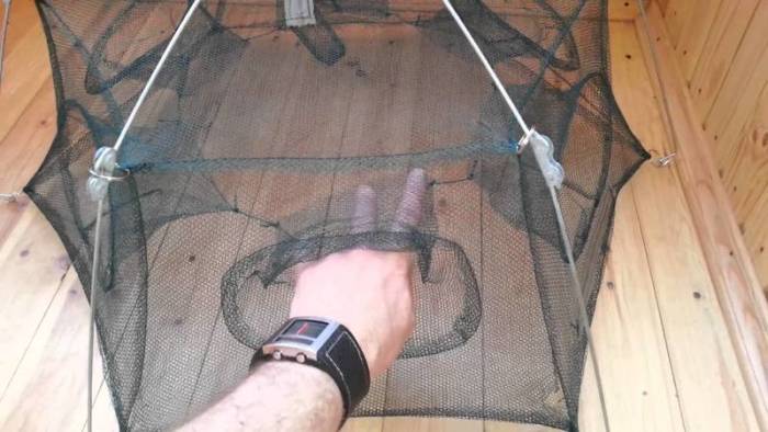 Устройства более сложной конфигурации оснащены специальным отверстием, через которое ракообразное забирается, но вылезти может не всегда, так как не отличается особым интеллектом. Такие ловушки можно даже оставлять на несколько часов без присмотра, после чего просто извлекать из них улов.