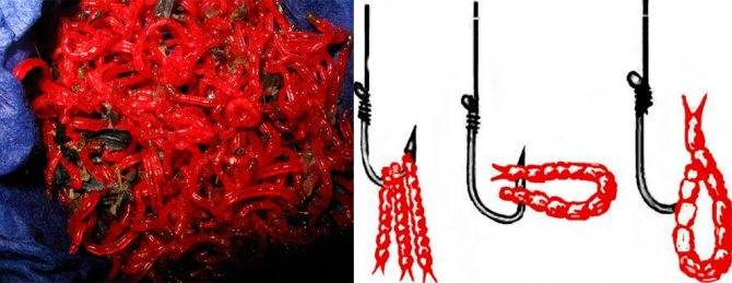 Если предполагается охота на леща, придется насаживать пучки навозных червей. При ловле ночью хороший эффект дадут выползки. При насаживании он прокалывается в нескольких местах: возле головы и посредине туловища. Чем больше наживки удастся насадить на крючок, тем эффективнее будет приманка.