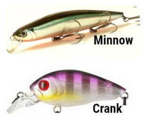 - Крэнк. Предназначены для работы в стоячих водоёмах. Обычно эффект имеет равномерная проводка такой приманки на малой скорости.