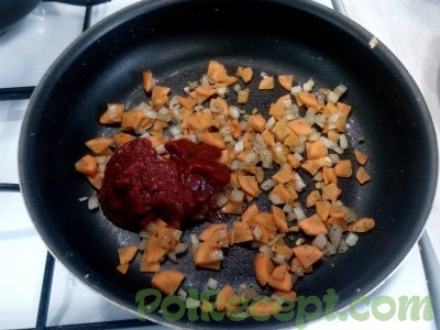 3.Отправить ее к луку, протомить вместе до мягкости овощей.