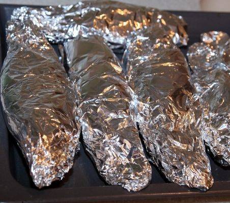 - Аккуратно заворачиваем фольгу и проделываем такую процедуру с оставшимися ингредиентами.