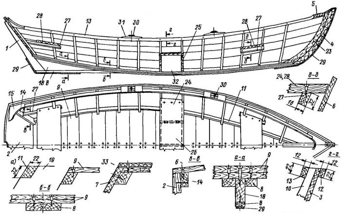 Главным элементом каркаса лодки является киль – основание, на которое крепятся все остальные части корпуса.