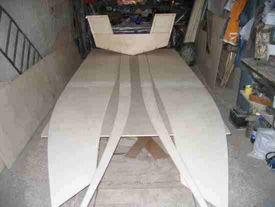 - Если в лодке планируется обустроить кокпит (закрытое пространство в носовой части), устанавливаем крышку, фиксируя ее на бортах и шпангоутах.