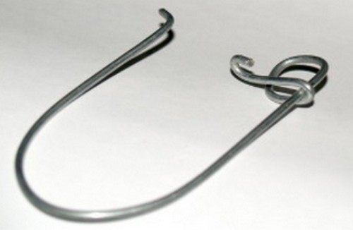 - Длинный конец сгибается в виде большой петли. Его конец отгибается так, чтобы он мог защёлкнуться в сделанной металлической петле.