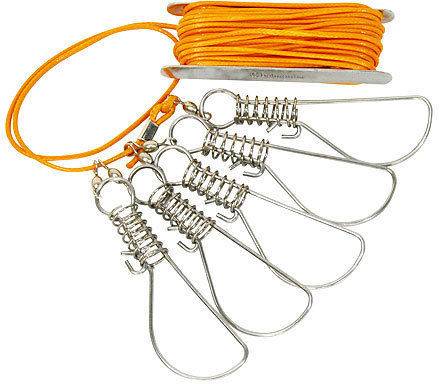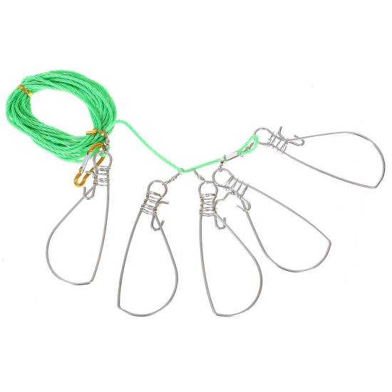 Kukan Salmo 9100 — синтетическая веревка с шестью пластиковыми рыболовными крючками. Каждое звено способно выдержать нагрузку до 48 кг. Пластиковые застежки разделены такими же пластиковыми перегородками.
