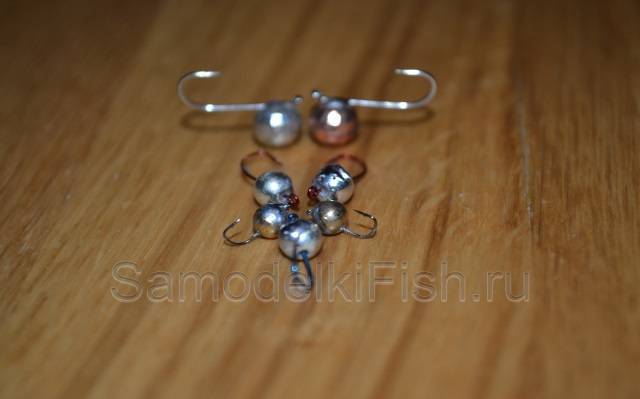 Вольфрамовые мормышки, изготовленные вышеописанным способом из цельного прутка, имеют при небольшом размере достаточный вес, чтобы можно было ловить ими на глубинах до 3 м.