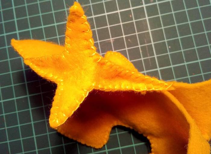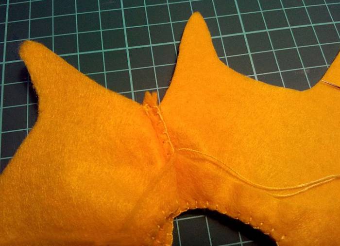 Пришейте деталь по контуру поочередно к обеим частям головы игрушки.
