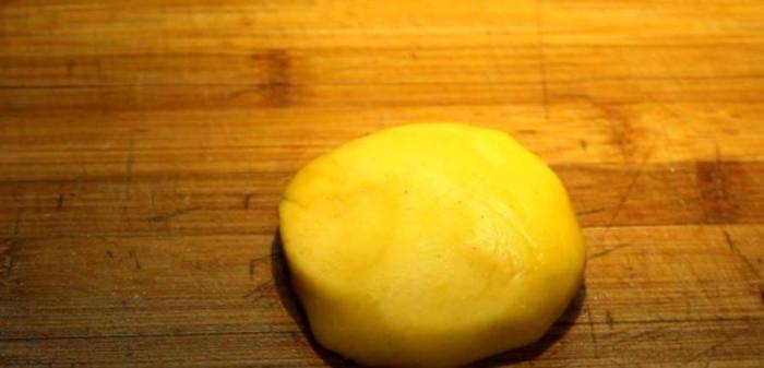 Картофель отваривается и разминается до пюре, потом смешивается с тестом.