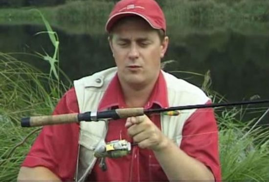Катушка и удилище подбираются таким образом, чтобы центр тяжести располагался в месте хвата рукоятки, что наглядно демонстрирует Владимир Щербаков