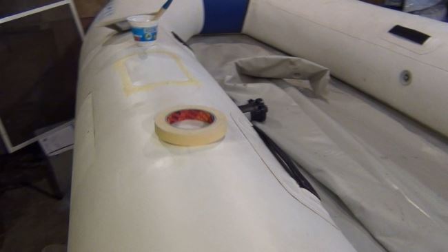 - Сделать шаблон заплатки и примерить к месту повреждения на корпусе лодки. Если повреждение небольшое по размеру, заплатка ставится с одной стороны, а если имеет большую площадь, то с 2-х сторон.