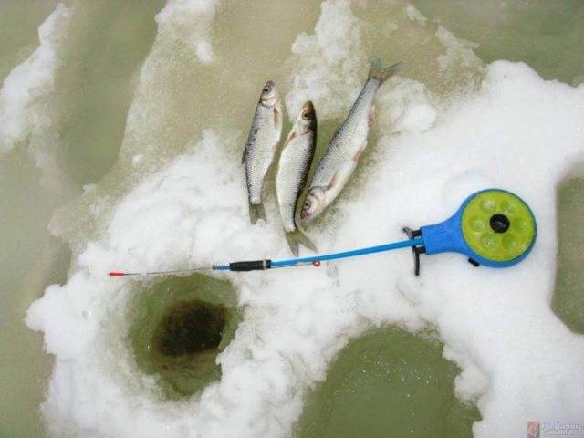 Надо пробурить их вдоль берега или поближе к центру водоема. В лунки насыпают прикормку, через полчаса начинают ловлю. На крючок насаживают приманку и направляют нить в лунку.