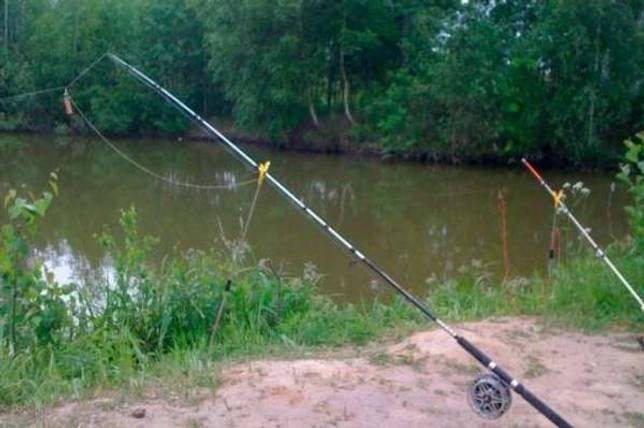 На тихой реке можно применять донку с амортизатором из резины. В качестве насадки идет небольшая рыбешка. Преимущества снасти – при ее использовании нет необходимости в постоянных забросах, применяется сразу от 5 крючков.