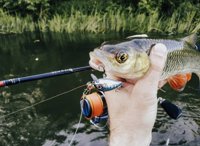 Ловля голавля на воблер происходит на течении. Потому приманка должна быть устойчивой на любой струе. Она не должна сбиваться с игры либо уходить в штопор при подаче поперек потока, против либо вдоль него.