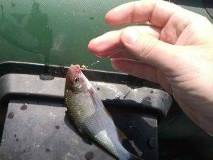 Важно не вспугнуть стаю, тогда в садке окажется около десятка серебристых рыбок. При использовании животных приманок частым в улове становится окунь. Его поклевка жадная и уверенная, медлить с подсечкой не стоит, иначе придется извлекать крючок из глотки рыбы