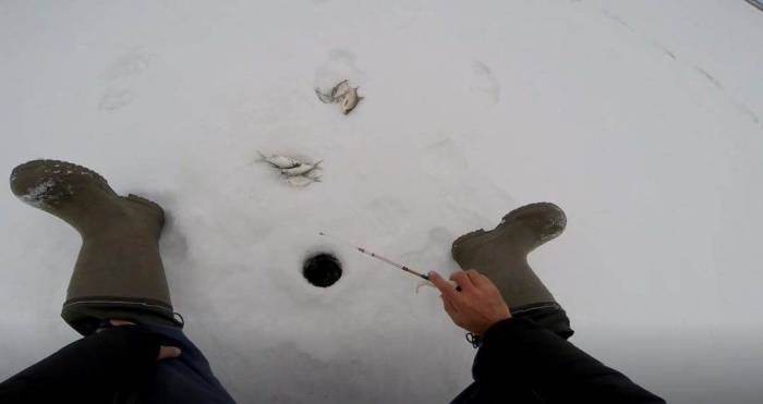 Поплавок следует ставить самый чувствительный, чтобы можно было заметить даже самую слабую поклевку, а их у густеры много. Она не отличается хорошей, четкой поклевкой. На конец лески привязывается грузило, соответствующее поплавку, можно даже чуть тяжелее, чтобы поплавок не на поверхности воды был, а чуть притопился. Это не позволит вмерзнуть поплавку в ледяную корку, которой лунка будет затягиваться.