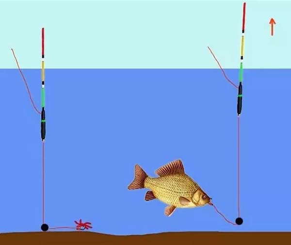 Одни рыбаки утверждают, что следует подсекать, как только поплавок ляжет на воду плашмя, а другие рыбаки утверждают, что надо выждать, и подсекать, только когда поплавок из горизонтального положения перейдет опять в вертикальное и начнет уходить в воду. Первое мнение вернее, однако, торопиться не надо и лучше выждать, до момента, когда поплавок немного закачается, это значит рыба, смакуя наживку, начинает всасывать ее в рот, а не удерживает ее за кончик. И перед тем, как поплавок ляжет, он тоже начнет качаться, это рыба толкает насадку носом, а потом берет ее своими губами.