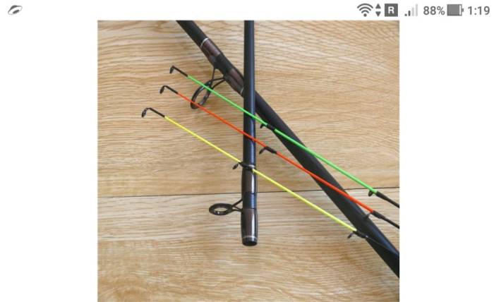 В комплектации несколько вершинок (квивертипов) из угле- или стеклопластика. Они разные и выбор зависит от условий ловли и вида оснастки. На прилагаемых вершинках есть маркировка в унциях.