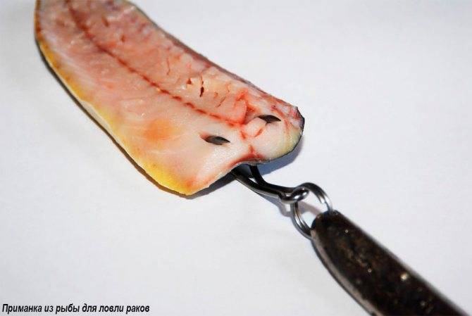 - Сырой рыбы (леща, плотвы, густеры). Наживку режут на небольшие фрагменты и помещают в ловушку. Благодаря специфическому запаху, членистоногие быстро начинают «подтягиваться» в рабочую зону.