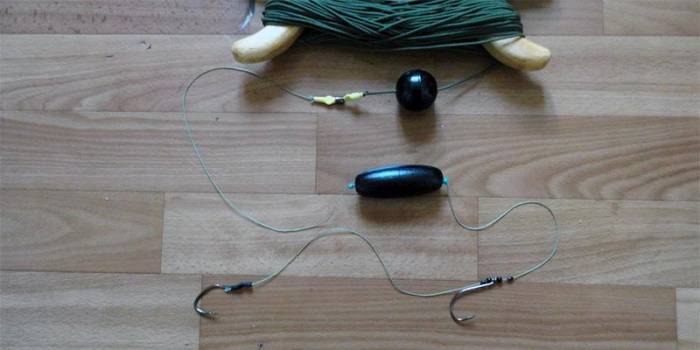 - На свободном конце лески крепится грузило. Оснастка может быть глухой или скользящей – все зависит от условий ловли.
