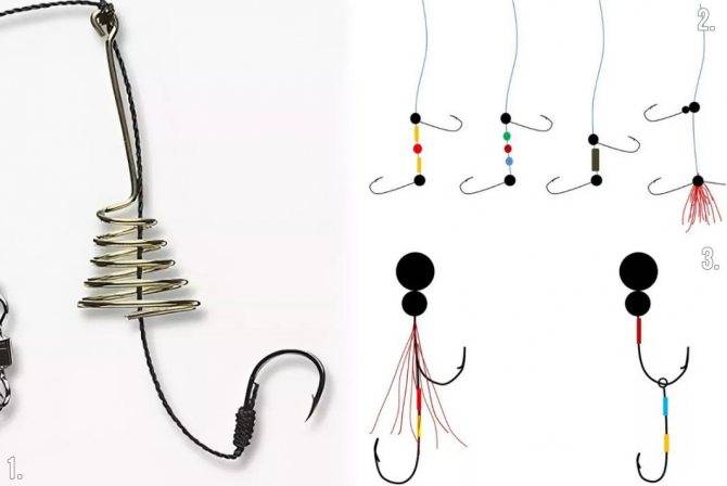 Основные детали крепятся без поводков, вспомогательный крючок вяжется выше основного через поводок. Мормышка может применяться в качестве груза, поэтому фиксируется выше других деталей.