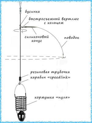 Стандартный монтаж фидерного оснащения состоит из следующих элементов: