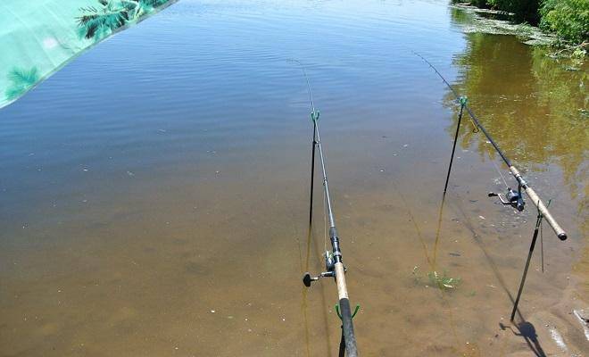 Маховая удочка незаменима при ловле карпа на мелководье недалеко от берега