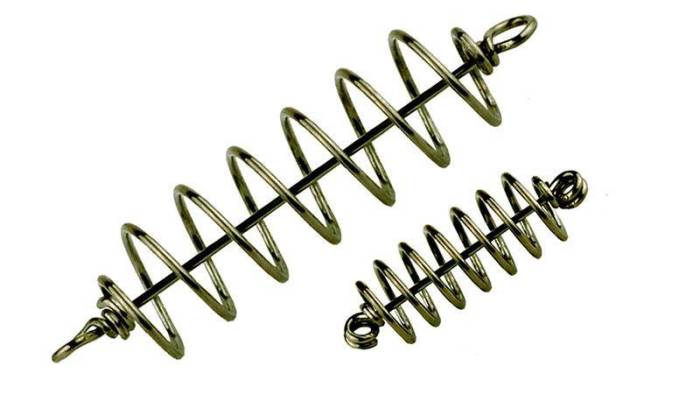 - «Спираль». Такое название кормушка получила из-за специфической спиралевидной формы. Внутри такой кормушки полый стержень, который свободно вместе с ней передвигается по леске. Такая кормушка – отличный выбор для дальних забросов. Заполнять ее нужно только вязкими смесями, так как остальные быстро вымоет.