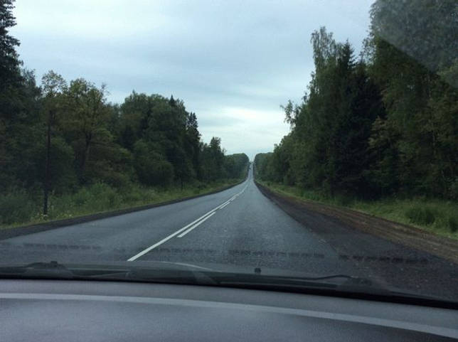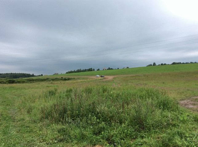 Сразу в голову пришла мысль — развернутся и пожарить мясо дома на сковородке… Но несмотря на полное отсутствие настроения и все-таки неумирающей надеждой на лучшее, мы отправились дальше. Буквально через несколько километров мы свернули в деревню Дерюзино. Сначала ехали по асфальту, потом он кончился и мы продолжили путь по полю.