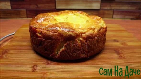 12. Готовый заливной пирог извлеките из формы и подавайте на стол.