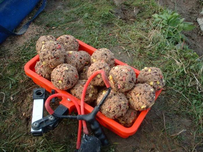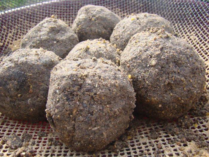 Существует довольно обширная практика по составлению прикормок, когда в основу добавляют различные ароматизаторы для привлечения рыбы и аттрактанты (вещества, возбуждающие у нее аппетит). Готовую смесь обычно разбавляют глиной или грунтом, затем лепят из нее небольшие шары. Их закидывают в то место, где будут ловить рыбу. Прикормка ложится на дно, шары в воде распадаются, и каша привлекает рыбу.