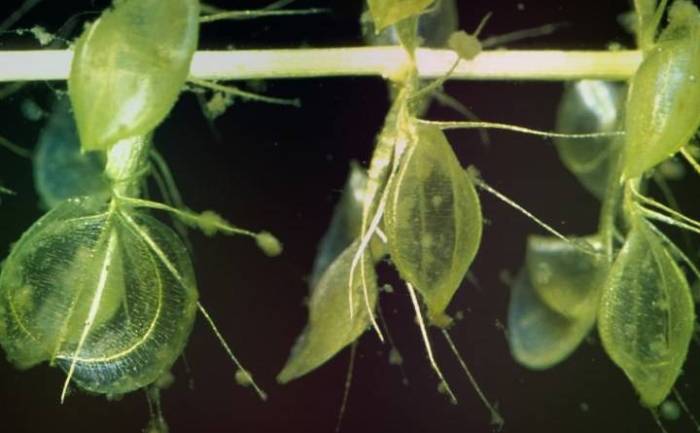 Пузырчатка — очень интересное растение, нужно будет обязательно поселить его в прудах экопарка: будет интересно понаблюдать за его охотой за насекомыми.