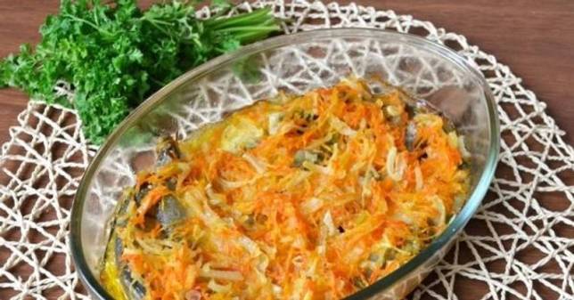 Это угощенье приятно удивит своим вкусом. Рыбка под овощной шубой получается сочная, нежная и ароматная. Морковь придаст небольшой сладости. Ряпушка в духовке для многих станет любимым блюдом.