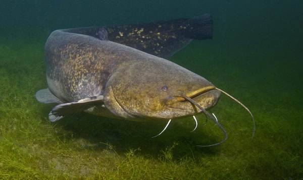 Крупнейший хищник без чешуи, достигающий в дину 5 метров, а по весу – 400 кг. Любимые места обитания – воды европейской части России. Главная еда сома – моллюски, рыба, мелкие пресноводные обитатели и птицы. Охотится по ночам, день проводит в ямах, под корягами. Выловить сома – сложная задача, так как хищник силен и умен