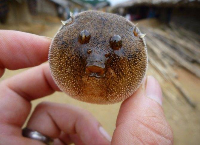 В стрессовых ситуациях, она наполняет специальные брюшные мешки водой, из-за чего раздувается. Такая естественная защита очень помогает рыбам, даже перед лицом крупного хищника, большой шар просто застревает в горле и хищник умирает. Кожа этого животного — плотная и толстая, а все тело покрыто шипами.